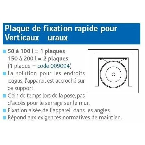 Cette plaque de fixation pour chauffe-eau mural vertical est idéal pour la pose de cumulus dans des endroits difficiles d’accés, où vous ne pouvez pas visser la fixation standard du chauffe-eau.