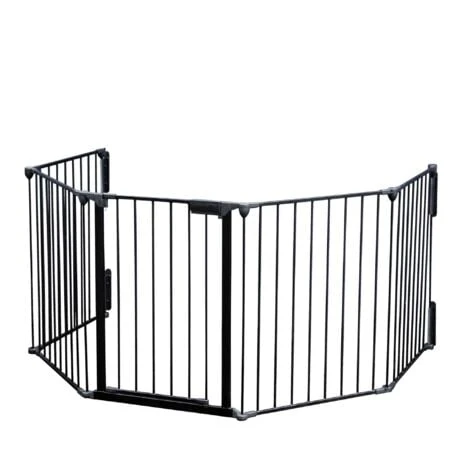 Nous vous offrons une grande grille de cheminée, conçue dans un design intemporel qui s’adapte non seulement à tous les styles de décoration intérieure, mais qui constitue également un pare-feu de taille généreuse avec une longueur totale d’environ 300 cm et une hauteur de 75 cm. Ce qui vous permet de l’utiliser également en tant que barrière de protection pour d’autres endroits dangereux, comme les escaliers par exemple. Posez simplement la barrière à l’extérieur de la cheminée et protégez les enfants et animaux du feu, des étincelles et des risques de brûlures.