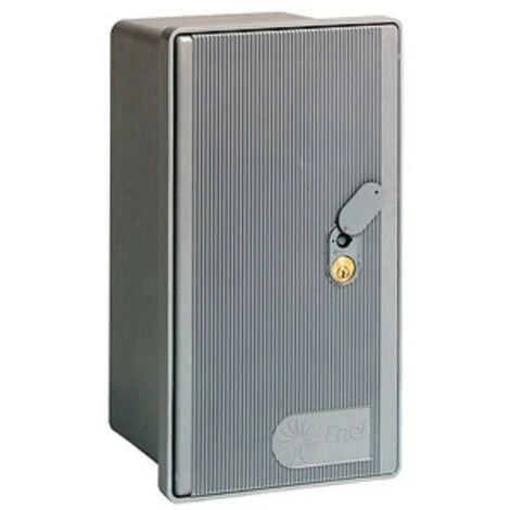 Modèle GMI / ENEL pour compteur monophasé. Avec serrure. Dimensions cm 23x24x42h. Corps en résine. Porte amovible ou ouverture 180. Encastré, mur, poteau ou base. Couleur gris RAL 7001. Degré de protection IP 44.