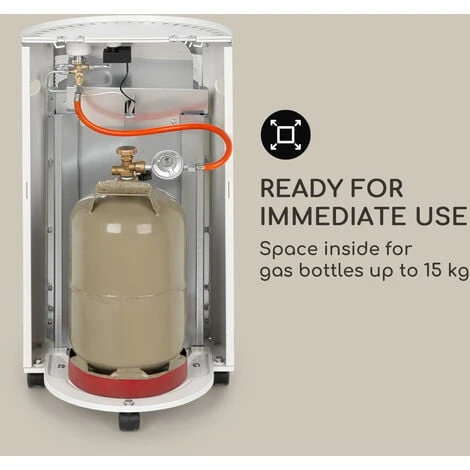 Les auges de transport ainsi que les quatre roulettes au sol permettent un déplacement facile – la chaleur est ainsi amenée exactement là où elle est nécessaire. Dans le Full Size Tank Cover, la bouteille de gaz n’est pas visible de l’extérieur, ce qui donne du style à l’appareil de chauffage à gaz. Un système ODS intégré, la soupape de sécurité en cas d’extinction de la flamme et la commande de la bouteille de gaz à l’épreuve des enfants assurent en permanence une sécurité maximale pendant le fonctionnement.