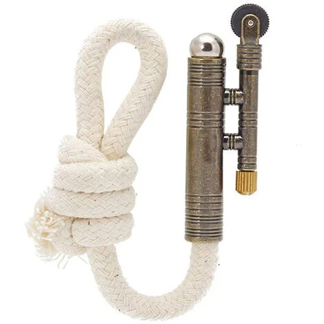 Remarque : avec un nouveau briquet à corde, brûlez l’extrémité de la corde avant de l’utiliser avec le silex. L’extrémité doit être noircie pour que l’étincelle s’accroche.