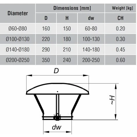 – Destination : Terminaison de conduits de cheminée ronds en métal ;