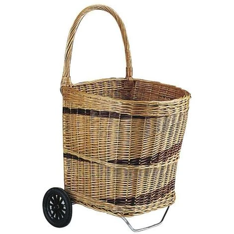 Chariot à bois en osier buff sur roulettes