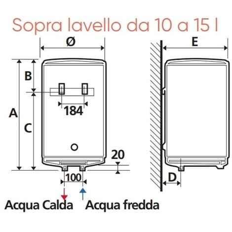 Chauffe-eau électrique Atlantic Ego 15 Litres installation Verticale au-dessus de l’évier, Classe énergétique B, Profil de charge XXS, émaillé avec du Titane et du Cuivre et soupape de sécurité incluse.