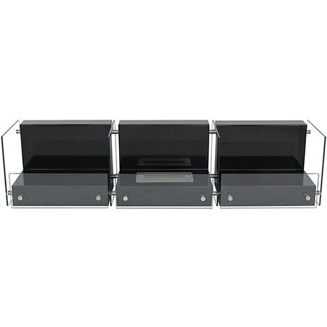 Un véritable feu moderne, écologique et design: une nouvelle alternative design et sans installation, à la cheminée à insert et à la cheminée traditionnelle. Cette cheminée bio éthanol vous offre un confort indéniable sans les inconvénients des cheminées traditionnelles. En effet, son installation est très simple et ne nécessite aucun conduit d’évacuation : plus aucun souci de ramonage ! Objet épuré, cette cheminée contemporaine participe à la décoration de votre intérieur et peut alors être déplacée où vous le souhaitez, en préférant tout de même les pièces bien aérées. N’hésitez pas à réhabiliter les cheminées délaissées ! Au-delà de ce premier atout, la cheminée bioéthanol ne dégage aucune fumée, odeur, cendre, poussière, suie ou étincelle. Oubliez les bûches qui roulent et crépitent, seuls de la vapeur d’eau et du gaz carbonique (l’équivalent de 3 bougies) s’échappent au travers des flammes, restituant une chaleur conviviale. Un être vivant rejette la même quantité que cette combustion : il n’y a donc aucun danger à l’horizon ! L’entretien se réduit ainsi au rechargement du carburant (gel bio éthanol pour les récipients et liquide pour les brûleurs), un liquide 100 % naturel, distillé à partir de plantes sucrières. La cheminée bioéthanol est aussi un excellent chauffage d’appoint qui vous fera faire des économies. Sa capacité de chauffage équivaut à celle de deux à trois radiateurs électriques selon les modèles et sa consommation est faible : 0,35l à 0,50l de bioéthanol par heure. Enfin, sachez que tous nos brûleurs sont double foyer (3mm 2mm) et soudés 100% afin d’éviter tout risque; et que tous les matériaux utilisés sont conformes aux normes de sécurité (le système de fixation est fourni avec chaque cheminée murale). Efficace, pratique, écologique, économique et esthétiquement beau, cette cheminée moderne est l’accessoire design idéal pour créer une ambiance feutrée dans votre intérieur ! Dimensions : 30 cm x 130 cm x 30 cm (L x l x H)
