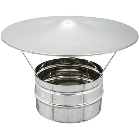 Cheminées fixes Chapeau chinois en acier inoxydable En acier inoxydable AISI 304, épaisseur 0,6 mm. Particulièrement adapté dans les zones mal ventilées. Attachement féminin