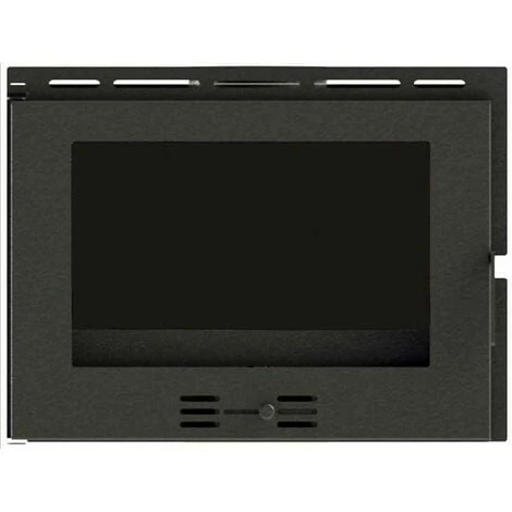 Insert de cheminée à bois ventilé beige, avec réfractaires, en acier épais S235JR et verre céramique pour hautes températures, avec une puissance thermique nominale de 16kw et un rendement de 70% avec une autonomie approuvée de 8 heures, conformément à la norme européenne EN 13229; tiroir à cendres amovible, régulation d’air de combustion en façade et 2 sorties gainables de diamètre 10cm. Dimensions 80x52x56 avec ventilateur cm; dimensions intérieures du foyer 42x69cm; profondeur utile 33cm; ventilation forcée avec ventilateur tangentiel avec un débit de 200 mètres cubes par heure. À l’intérieur, il est recouvert de panneaux de VERMICULITE SF 750 d’une épaisseur de 20 mm. Modèle L-80, ligne Refrattari, marque F.lli Lerda