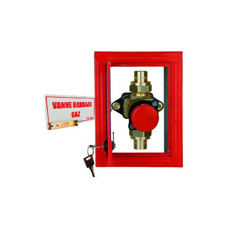 Coffret sous verre dormant avec robinet coup de poind + vanne 1/4 tour sécurité + signalétique + clé de réarmement + raccord.