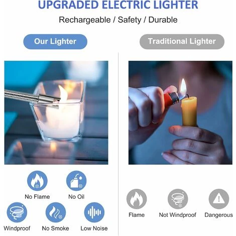 est complètement chargé - Technologie sans flamme plasma : le briquet électrique fournit une énergie d’arc haute tension sans flamme et sans odeur pour répondre à vos besoins d’éclairage. La conception coupe-vent le rend facile à utiliser à l’intérieur