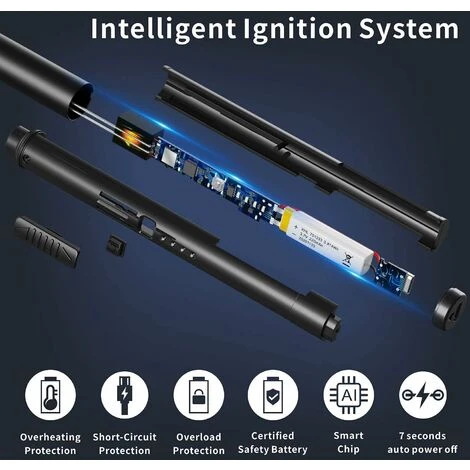 Allumage plasma ARC : briquet sans flamme, sans gaz nocifs ni butane Puce d’allumage intelligente : 7 secondes d’arrêt automatique après avoir continué à fonctionner Indicateur de batterie LED : affichage de la consommation de la batterie en temps réel par USB 4 lumières