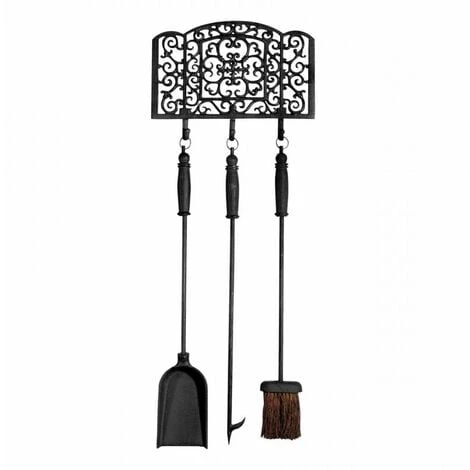 Ce serviteur mural en fonte au motif ouvragé viendra en complément du pare-feu ou tout simplement pour donner du style à votre cheminée, ce serviteur de couleur noire rassemble et présente trois outils de haute qualité: une brosse en coco, un tisonnier et une pelle.