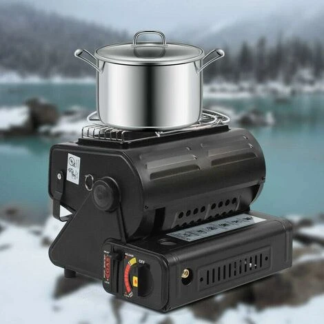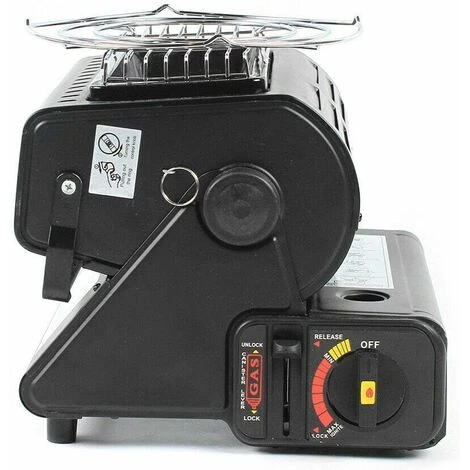 Chauffage à gaz portable pour camping – 1,3 kW Caractéristiques : Fonction : réservoir de gaz butane double usage connecté au réservoir de gaz (pour chauffer, faire bouillir). Matériau : plaque de gadolinium froide après traitement pressé et pulvérisateur + plaque en céramique alvéolée. Carburant : cartouche de gaz butane de 220 g. Allumage : allumage électronique piézoélectrique. Consommation de gaz : 100 g/h. Puissance : 1,3 kW (maximum Approx. Poids du produit : 2,3 kg. Dimensions du produit : 28 x 18 x 26 cm. Contenu : 1 chauffage à gaz pour camping.
