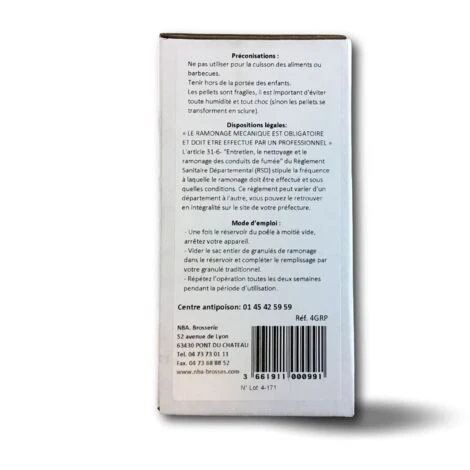 - Les pellets sont un complément au ramonage mécanique. Ils s’utilisent environ toutes les 2 semaines pendant la période de chauffage, mélangés aux pellets utilisés habituellement et après avoir éteint momentanément l’appareil