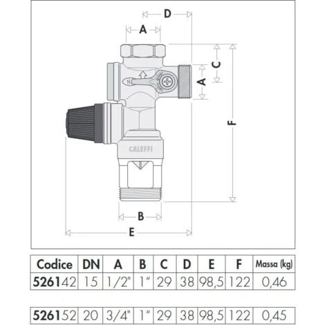Groupe de sécurité pour chauffe-eau à accumulation avec clapets d’arrêt et anti-retour |Caleffi 526142-526152