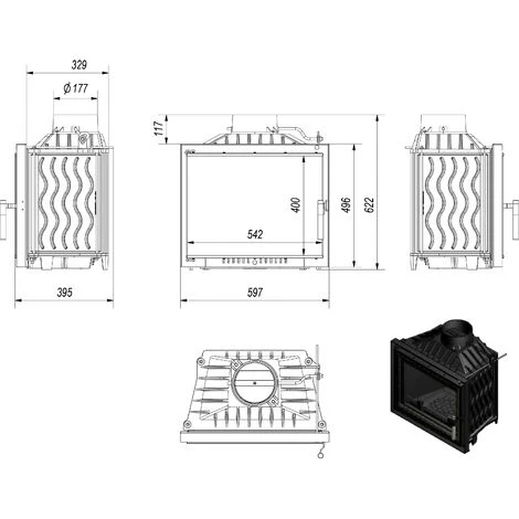 – Utilisation maximale de la chaleur due à des radiateurs à forte densité espacées et la paroi de l`insert en fonte de haute qualité avec une épaisseur de 8 mm.