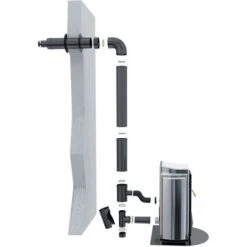 - Une fois ce perçage réalisé, l’assemblage de tous les éléments ne prendra pas plus de 30 minutes. Ces tuyaux vont s’emboiter l’un dans l’autre. Ensuite deux flasques de propreté viendront de chaque côtés de votre mur pour la finition.