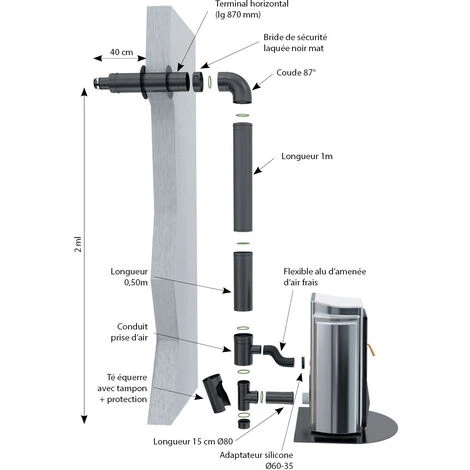 - Kit façade Bioten 80/125 (10 pièces) pour configuration horizontale concentrique pour poêle étanche.
