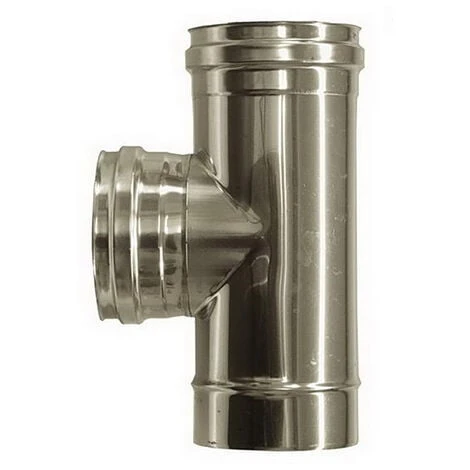 un raccord en T mâle-femelle avec élimination CENTRAL FEMALE de même diamètre, permet de relier le canal de fumée à la cheminée.