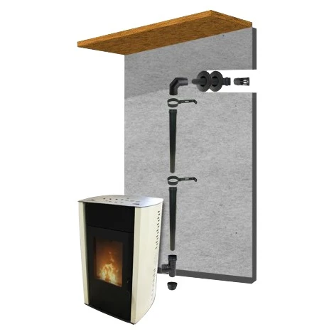 Pour le montage de ce kit sur votre poêle, se référer au schéma en photo et prévoir un tuyau pour l’arrivée d’air frais.