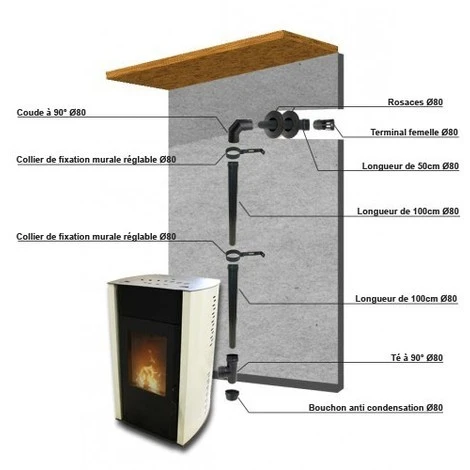 Ce kit en sortie type ventouse pour poêle à granulés d’un diamètre de 80 mm contient les éléments suivants :