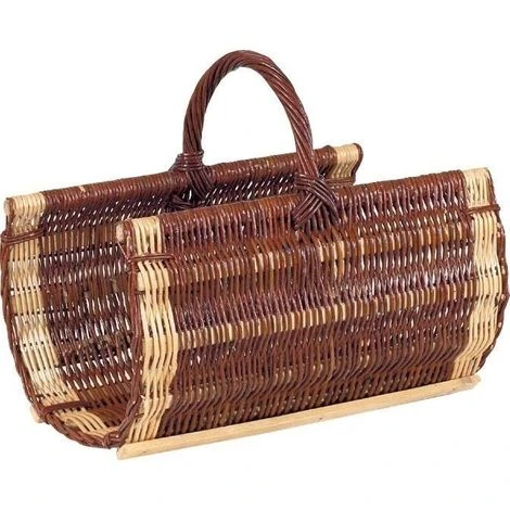 Le panier à bûches en osier brut et écorcé résistant est parfait pour transporter votre bois de chauffage.