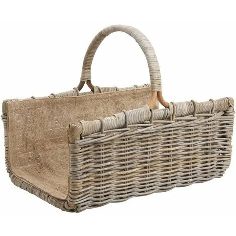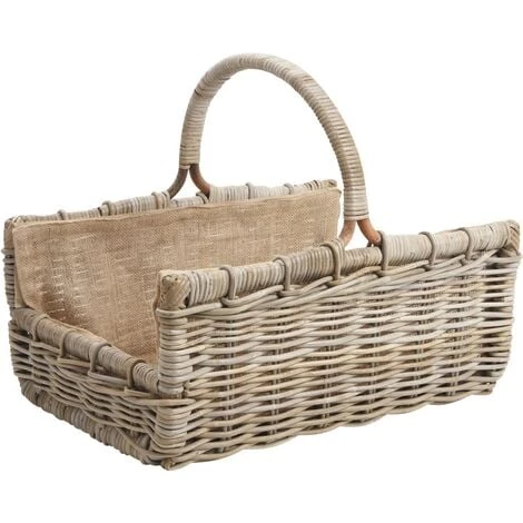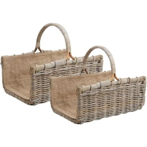 - Lot de 2 paniers à bûches En poelet gris (liane de rotin robuste)