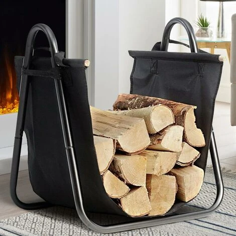 1 x Berceau porte-bois en métal avec panier porte-bois en tissu Cheminée Poêle