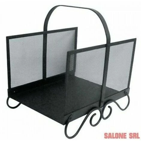 PORTE-BOIS POUR POÊLE ET CHEMINÉE en acier peint en noir. Dimensions cm. 41x33x48h.