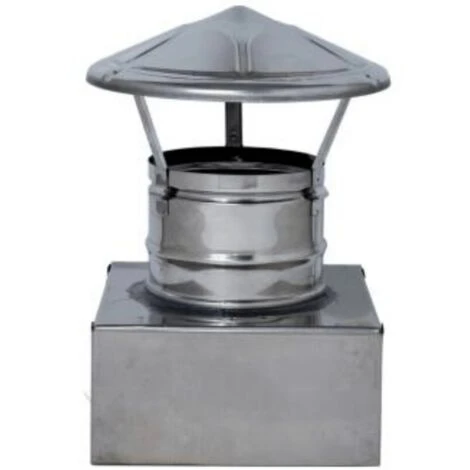 Cette borne ? chapeau de pluie en acier inoxydable AISI 304 sur base carr?e est utilis?e pour fermer les conduits de fum?e et pour l’?vacuation des fum?es des po?les ? granul?s.