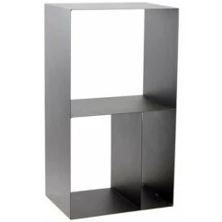 Range Bûches Vertical Acier Noir Avec étagère H.112 CM Pour Cheminée