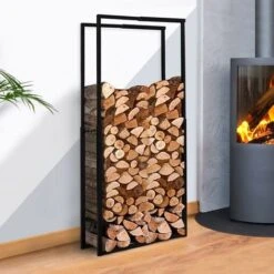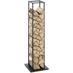Range Bûches Vertical Acier Noir Avec étagère H.170 CM Pour Cheminée