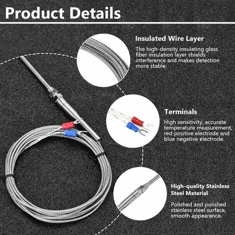 Excellentes performances : la sonde de 5 mm de ce thermocouple est très sensible et peut détecter rapidement la température. Et il a une résistance à haute température dans la plage de 0 à 400, ce qui est largement utilisé pour la mesure de la température.