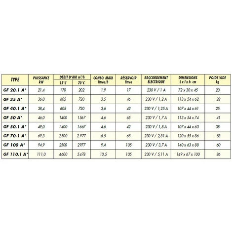 Débit d’air : 15°C : 605 m3/h – 70°C : 720 m3/h