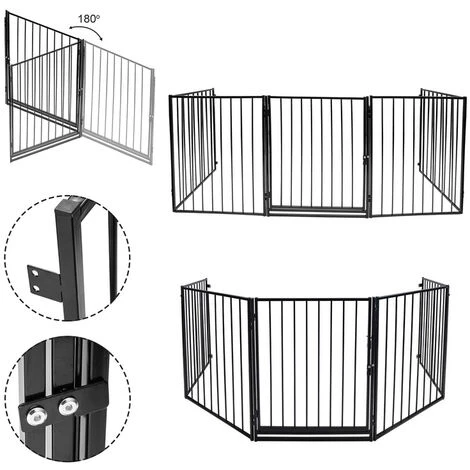 【Grille de sécurité pour enfants set de 5 éléments, porte comprise】 La barrière de sécurité pour cheminée se compose de 5 éléments (1 élément de porte et 4 éléments latéraux). Chaque élément mesure 61 cm de large et 76 cm de haut. La largeur intérieure