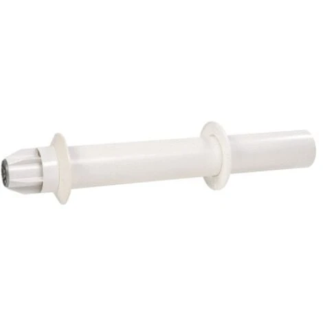 Ce terminal horizontal Rolux Gaz 80/125 de Ubbink autorise une grande longueur de conduit pour aller déboucher sur la façade choisie en traversant la paroi sans fourreau.