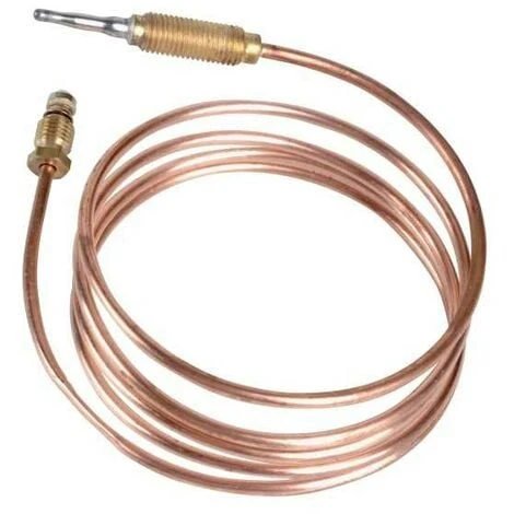 Le thermocouple contrôle la présence de flamme en étant chauffé par elle. En son absence, le thermocouple coupe l’arrivée du combustible. Ce thermocouple a une tête filetée. Longueur : 1200mm On l’appelle aussi : couple thermo-électrique