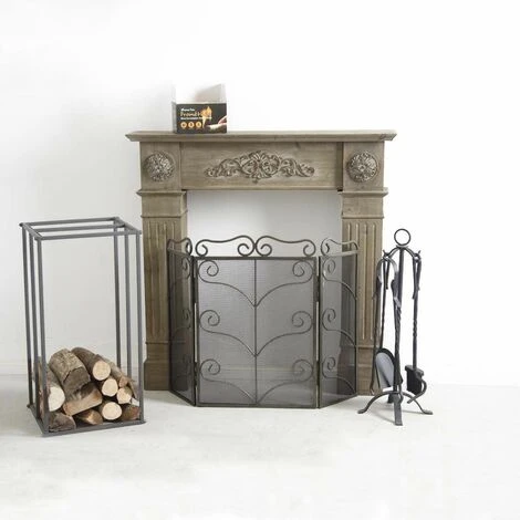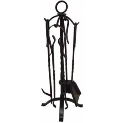 - Avec 4 accessoires : Pelle, balais, tisonnier et pince en fer forgé