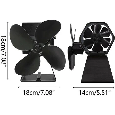 Ventilateur de poêle Ventilateur de poêle à bois Ventilateur de cheminée Ventilateur thermodynamique à double tête Caractéristiques : La nouvelle conception à double tête de ventilateur fournit un flux d’air plus puissant, améliore la circulation de l’air et améliore l’efficacité de combustion du foyer. Alimenté par la chaleur : Les ventilateurs de poêle à bois alimentés par la chaleur génèrent de l’énergie en convertissant la chaleur du poêle en électricité, les unités génératrices d’électricité convertissent l’énergie thermique en énergie pour entraîner le moteur, puis les pales tournent. Pas de piles ou d’électricité nécessaires, respectueux de l’environnement. Grand volume d’air : Diffusez de l’air chaud dans toute la pièce. Placez simplement le ventilateur du poêle sur une surface plane et lisse de votre poêle, près du côté ou de l’arrière du tuyau de poêle. Besoin de placer le ventilateur du poêle à au moins 4 du tuyau de poêle. Cela fonctionnera lorsque la surface du poêle sera chaude. 80C(176F)-400C752F) température de fonctionnement, la température maximale ne doit pas dépasser 350C (662F): Le ventilateur du poêle à bois tourne lorsque la température atteint 80 °C (176 °F). Plus la base du ventilateur est chaude, plus le ventilateur tourne rapidement et plus l’air circule dans la pièce. Il ralentira et s’arrêtera lorsque le poêle se refroidira. Matériau aluminium : Le ventilateur du poêle est fabriqué en aluminium anodisé, qui ne rouille pas et ne se corrode pas lorsque le ventilateur devient chaud. Fonction de protection Il y a une feuille de fer sur le fond du ventilateur, avec l’augmentation de la température, la feuille de fer se lèvera pour protéger le ventilateur contre les dommages. La base du ventilateur est équipée d’un dispositif de sécurité bimétallique. Si la température de surface dépasse 300 °C, le dispositif de sécurité soulève doucement l’avant du ventilateur pour protéger le TEG et le moteur. Spécification : Matériel: Aluminium Poids du produit : environ 1000 g Taille du produit : longueur 18 cm largeur : 14 cm de hauteur : 18cm Vitesse de fonctionnement : 1360RPM (Max) AirFlow60-150CFM Fonctionnement silencieux, le bruit est inférieur à 25dB Température de démarrage : 100C Température de surface normale : 80-400C Température de tenue maximale : 400 C Le produit comprend : 1 ventilateur de poêle
