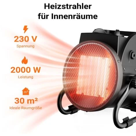 Le chauffage infrarouge est doté d’un élément chauffant en céramique et d’une protection contre la surchauffe. Pour régler les différents niveaux de puissance (25/1000/2000 W), l’appareil est équipé d’un autre commutateur rotatif. Par ailleurs, le design compact, le propre poids faible et la poignée de transport facilitent le transport et la mise en place dans chaque pièce. Les avantages de l’appareil résident dans le niveau sonore minimal et la production très faible de fumée et d’odeur gênantes.